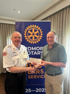 4/16/2026 1200 – John Dougherty, President of the Rotary Club of Ardmore, proudly presented Tom Hayden, Chief of the Merion Fire Company of Ardmore, a check for $11,000.00, the proceeds from the annual Pancake Breakfast held in October!