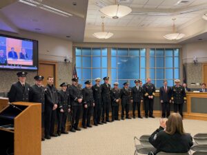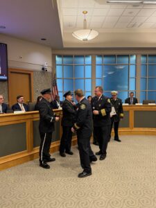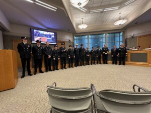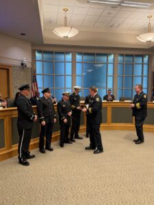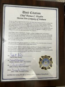 01/21/2026 1900 – Chief Hayden, Deputy Chief Hayden, Assistant Chief Garland, Firefighter Knabe and Firefighter Zamorski received a Unit Citation for their courageous and selfless acts rescuing a woman from an apartment in June: