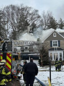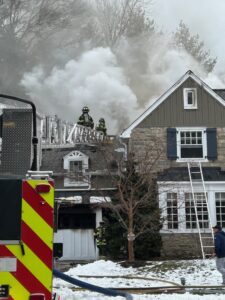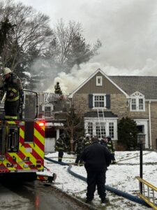 01/23/2026 1449 – The building fire assignment was transmitted to 605 Woodleave Road in Bryn Mawr on the report of a garage fire in an attached garage. Station 23 (Bryn Mawr), Station 24 (Gladwyne), Engine 25-1 (Ardmore), Ladder 26 (Narberth), RIT 21 and Narberth Ambulance were on the initial dispatch. FM 34-1 arrived first and reported heavy smoke coming from the house with heavy fire in the garage and to proceed with the Lower Merion Working Fire Dispatch, which added Station 28 (Union Fire Association) and Station 22 (Belmont Hills Fire Company) along with another RIT team from Conshohocken.